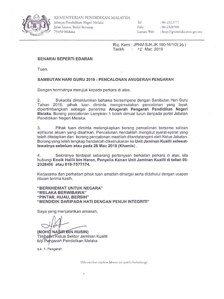 Surat Pencalonan Anugerah Pengarah Tahun 2019 Pdf